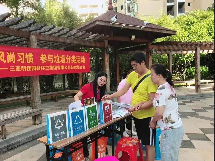 為進(jìn)一步強(qiáng)化小區(qū)居民對(duì)垃圾分類的認(rèn)識(shí),不斷提高居民愛護(hù)環(huán)境、保護(hù)環(huán)境的意識(shí),養(yǎng)成垃圾分類的好習(xí)慣,帶動(dòng)更多人參與到垃圾分類的行動(dòng)中來(lái),助力三亞創(chuàng)建全國(guó)文明城市。11月17日9時(shí),三亞明佳集團(tuán)黨支部、工會(huì)、婦聯(lián)、共青團(tuán)聯(lián)合在南新悅城小區(qū)開展“倡導(dǎo)文明風(fēng)尚習(xí)慣 參與垃圾分類活動(dòng)”為主題的垃圾分類宣傳活動(dòng)。